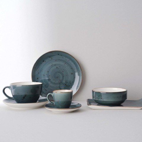 Bogata kolekcja ręcznie zdobionej porcelany w czterech soczystych kolorach. Dopasuj elementy pomarańczowe, niebieskie, szare i oliwkowe, aby uzyskać unikalny i zaskakujący wygląd stołu, a jedzenie będzie prezentować się tak samo dobrze, jak smakuje. Zastawa wytrzymała i odporna, zaprojektowana tak, aby wytrzymać trudy użycia w profesjonalnej kuchni.